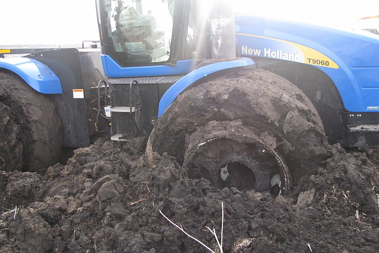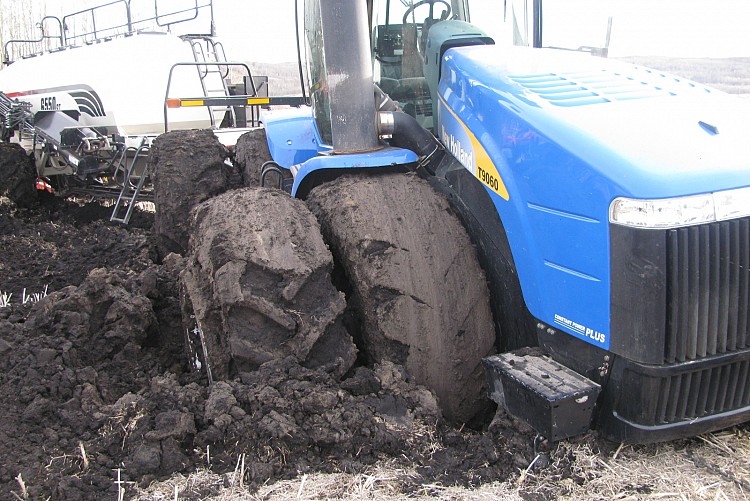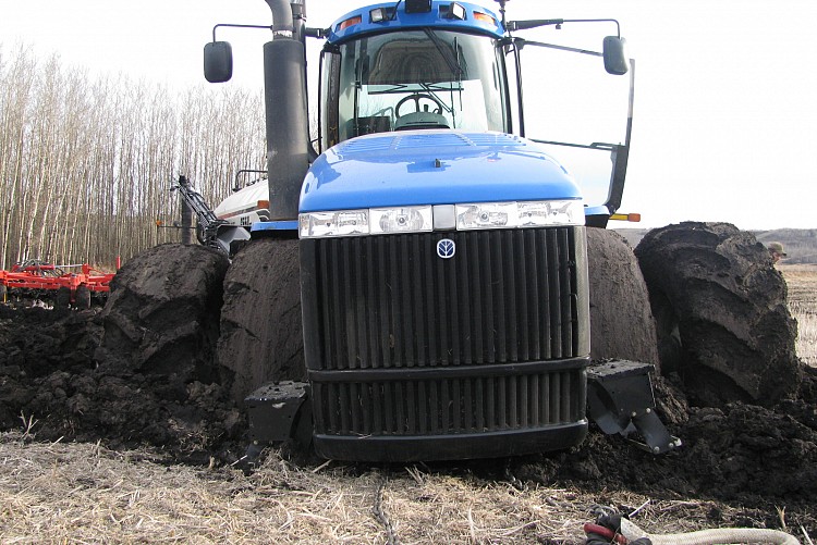 We had to unhook the tractor, cart and drill and pull them out separately. We used a flaman tow rope hooked up to a D7 CAT and a Tractor.
