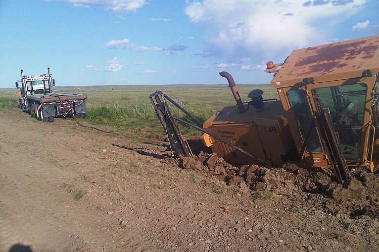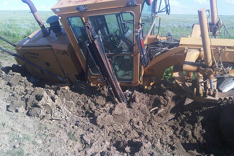 I was pulling up a shoulder on a oilfield road and grading along when all of a sudden down she went.