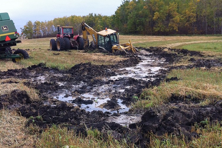 It took two big four wheel drive tractors and the back hoe pushing and pulling to get it out